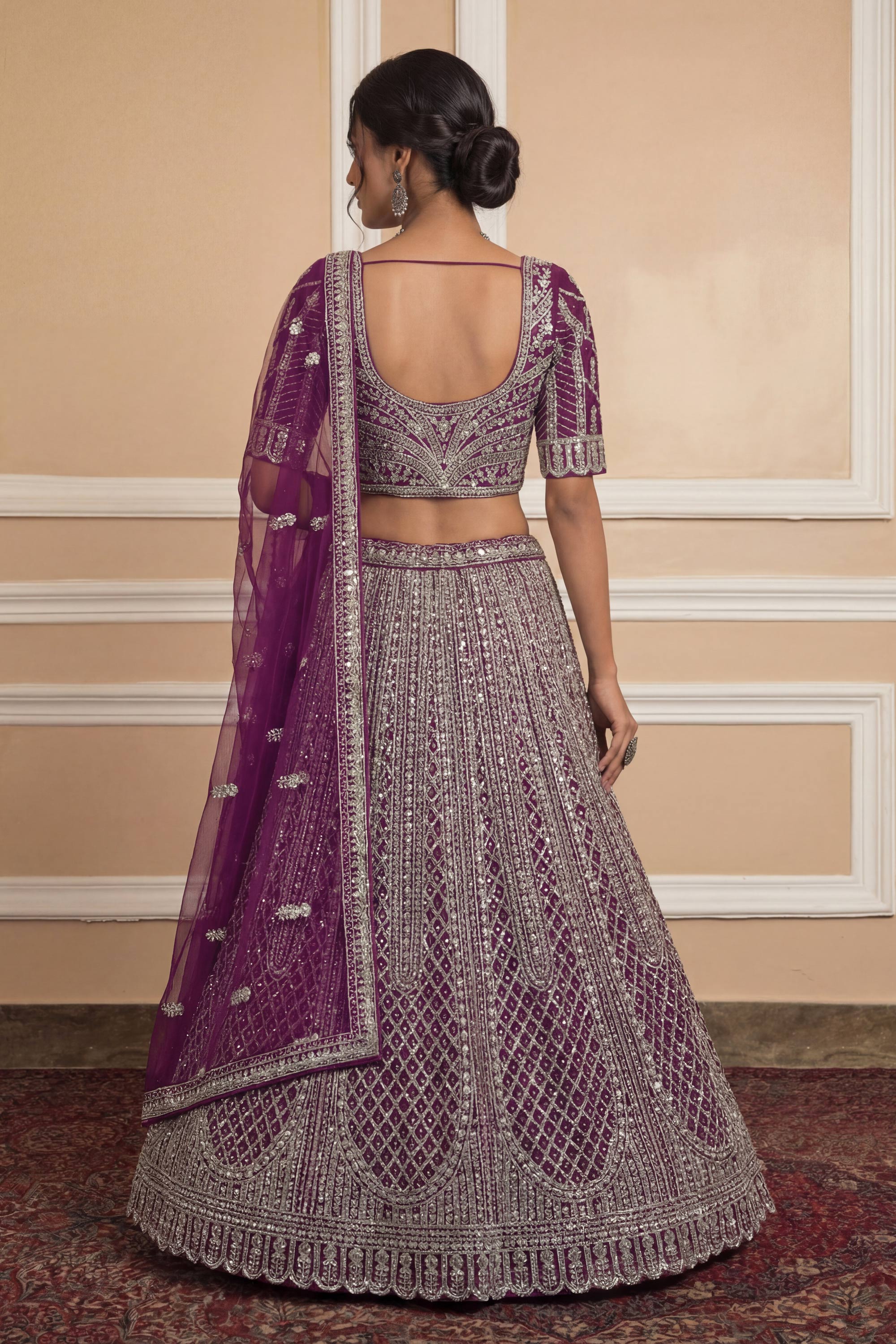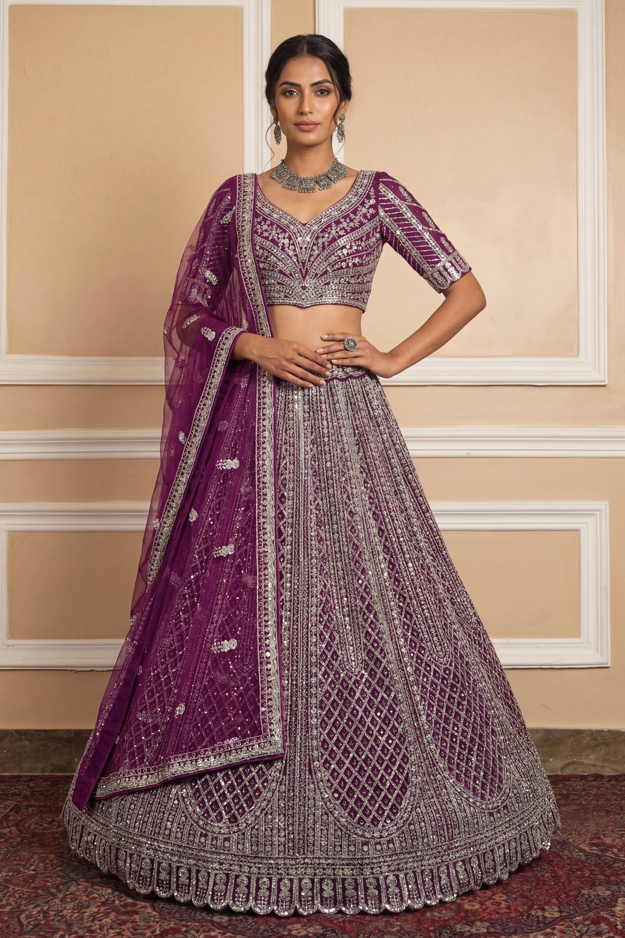 Purple Wedding Wear Net Sequins Embroidered Lehenga Choli With Dupatta