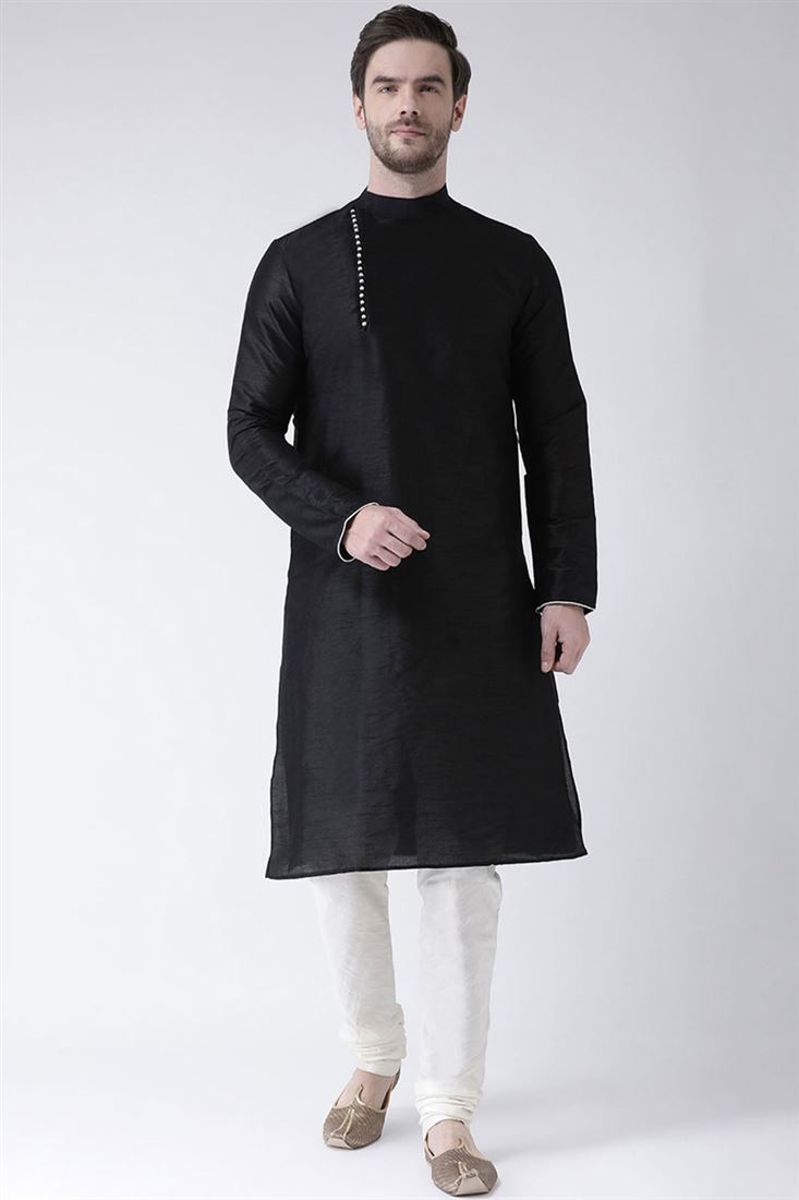Radiant Black Color Dhupion Silk Fabric Festival Wear Kurta Pyjama