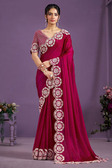 Rani Color Gorgeous Satin Silk Party Style Two Tone Saree