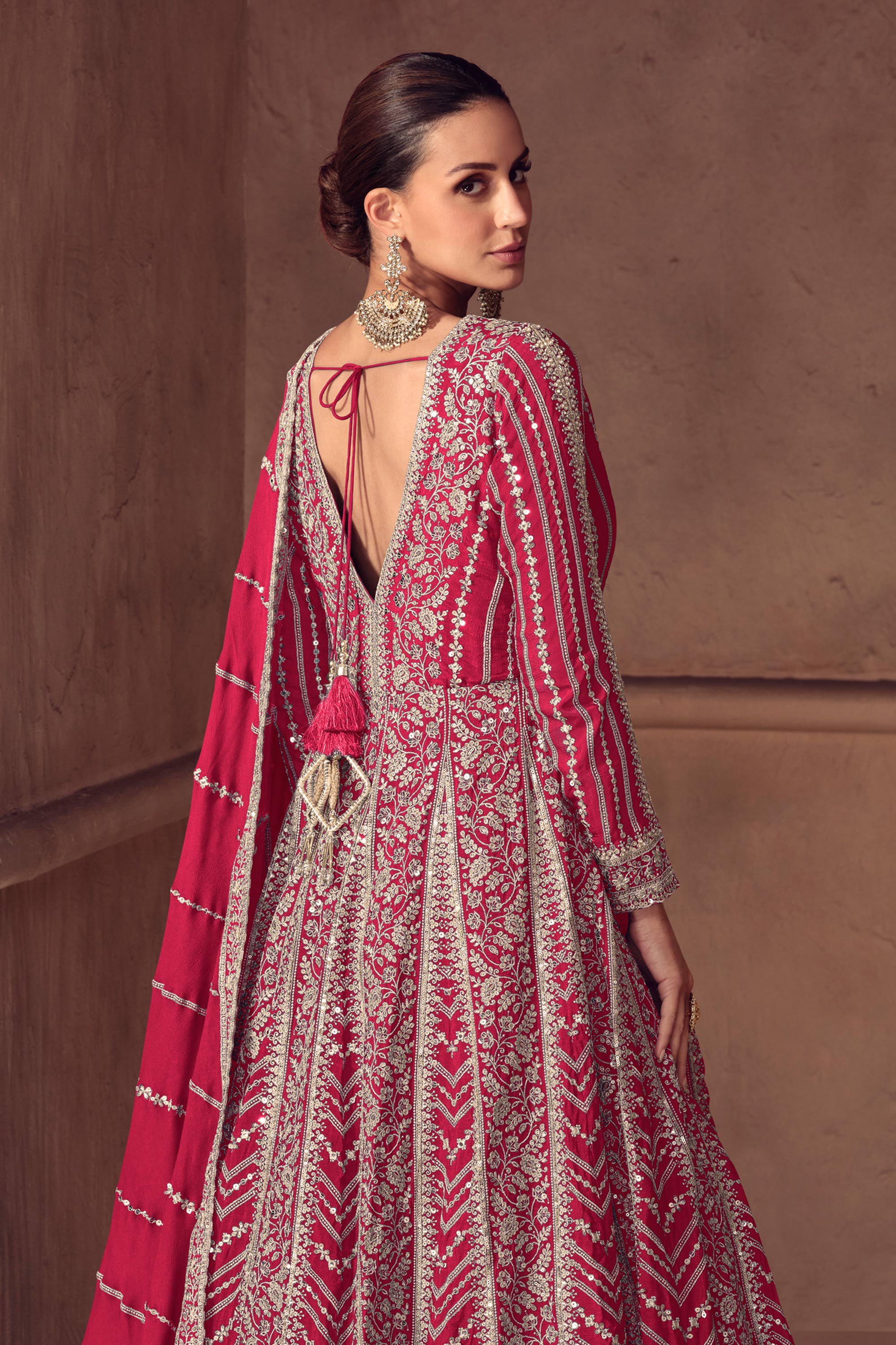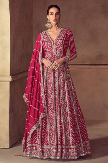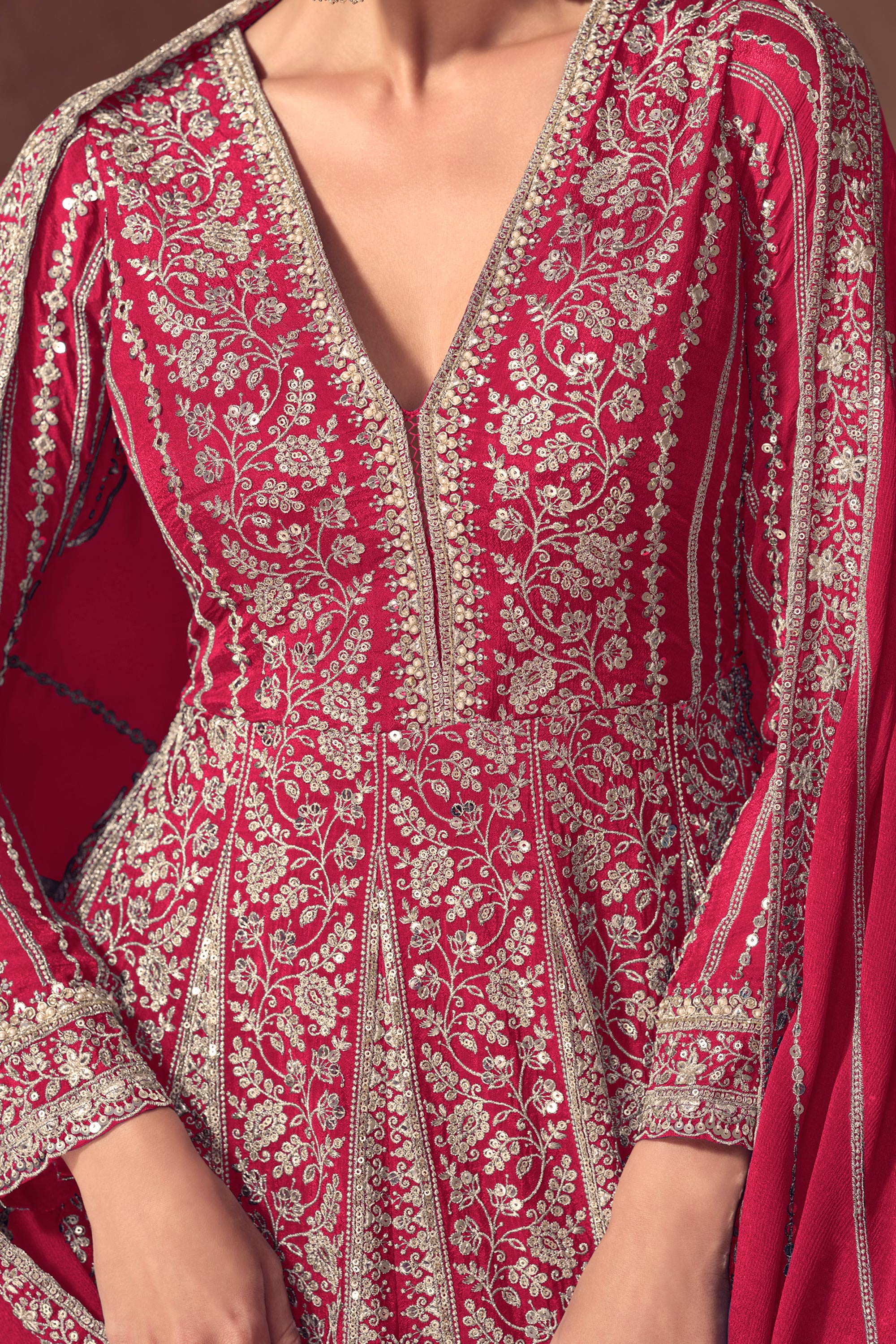 Rani Party Wear Chinon Embroidered Designer Readymade Floor Touch Gown With Dupatta