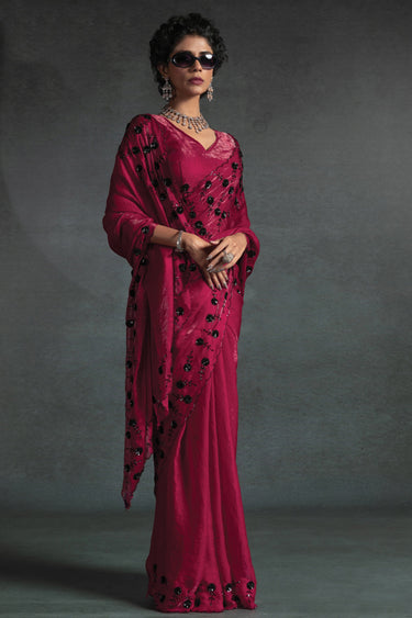 Impress everyone at your next gathering with the Navy Blue Satin Silk Sequins Work Saree. Made from premium satin silk, this saree features beautifully crafted sequins that offer a radiant finish. Ideal for formal events and parties, it drapes effortlessly, enhancing your graceful silhouette. A matching blouse piece accompanies the saree, allowing you to put together a stunning outfit with ease. Add this exquisite piece to your collection and step out with confidence and style at every event.