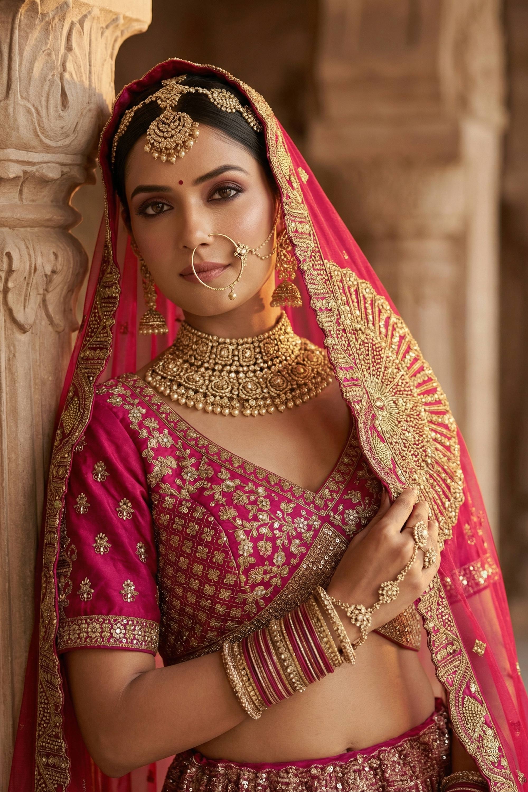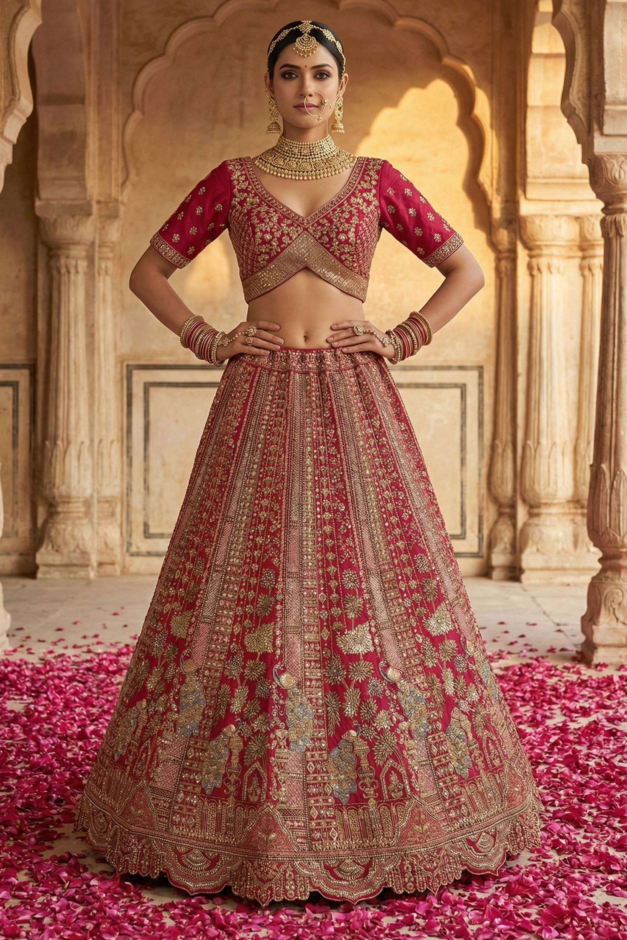 Make your wedding day truly unforgettable with this exquisite Bridal Lehenga Choli, designed to reflect timeless elegance and royal charm. Crafted from luxurious silk fabric, the lehenga showcases a rich and graceful drape that enhances the beauty of traditional bridal wear. Adorned with heavy embroidery, this ensemble radiates opulence and grandeur, perfectly suited for wedding celebrations. The rich color adds depth and sophistication, creating a regal bridal look. Note: Due to digital photography, slight color variations may occur.