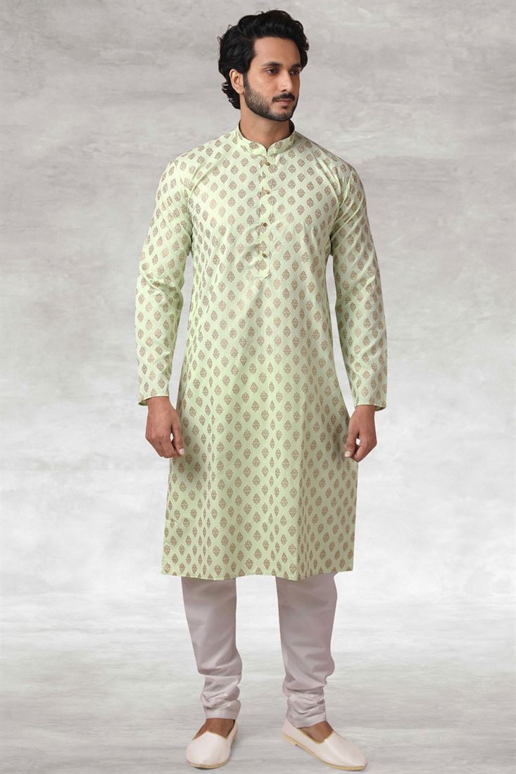 Readymade Beige Color Festival Wear Stright Kurta Pyjama In Cotton Fabric