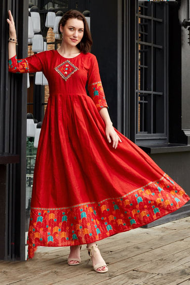 Red Color Cotton Incredible Readymade Kurti