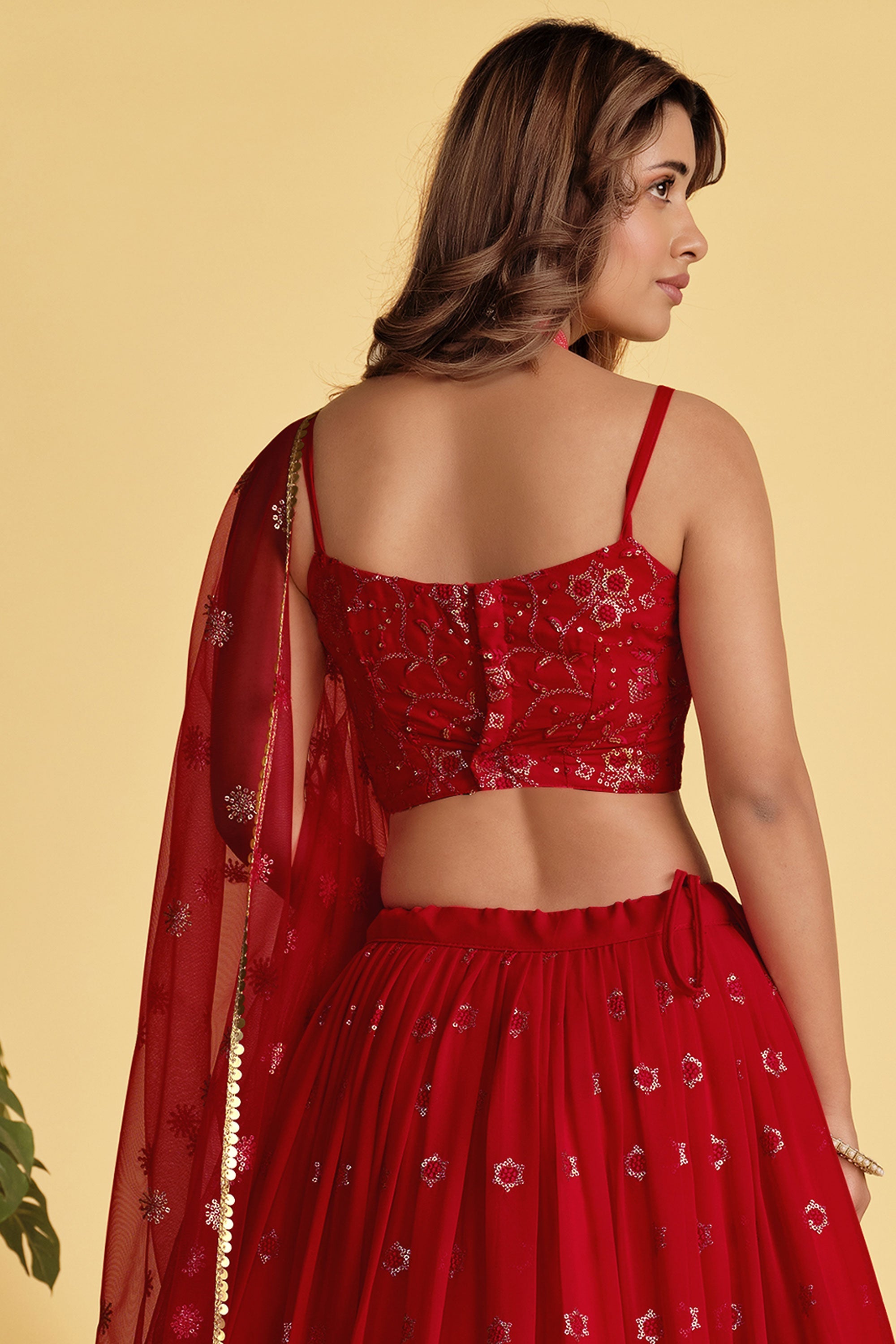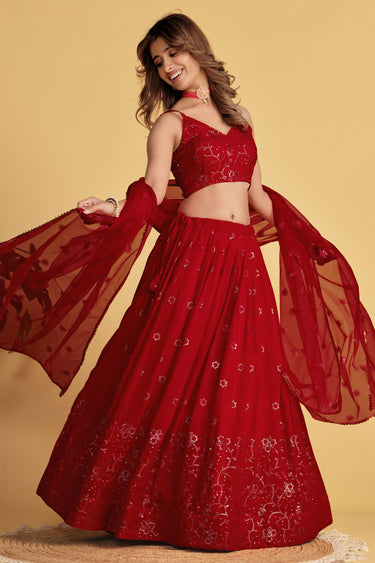 Red Color Georgette Fabric Glamorous Look Sequins Work Lehenga