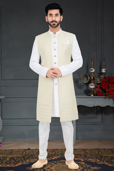 Remarkable White Jacquard Fabric Italian Indo Western
