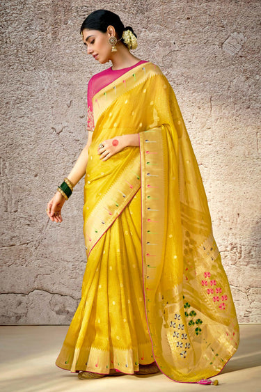 Elevate your wardrobe with our exquisite Kora Banarasi Saree, featuring meticulously woven floral designs. The intricate zari and silk threads form a captivating display of shimmering light and vibrant colors. Complement this gorgeous saree with a Banarasi Silk Blouse that boasts heavy embroidery and meticulous handwork. Ideal for festive events, traditional gatherings, or an elegant evening out, this saree set will leave a lasting impression.