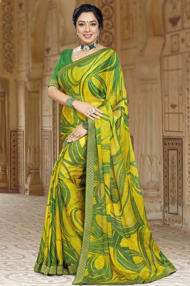 Rupali Ganguly Yellow Color Fascinating Georgette Floral Printed Saree