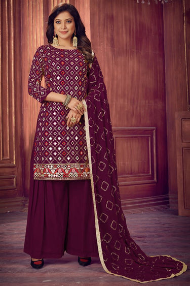 Sangeet Wear Georgette Fabric Purple Color Embroidered Palazzo Suit