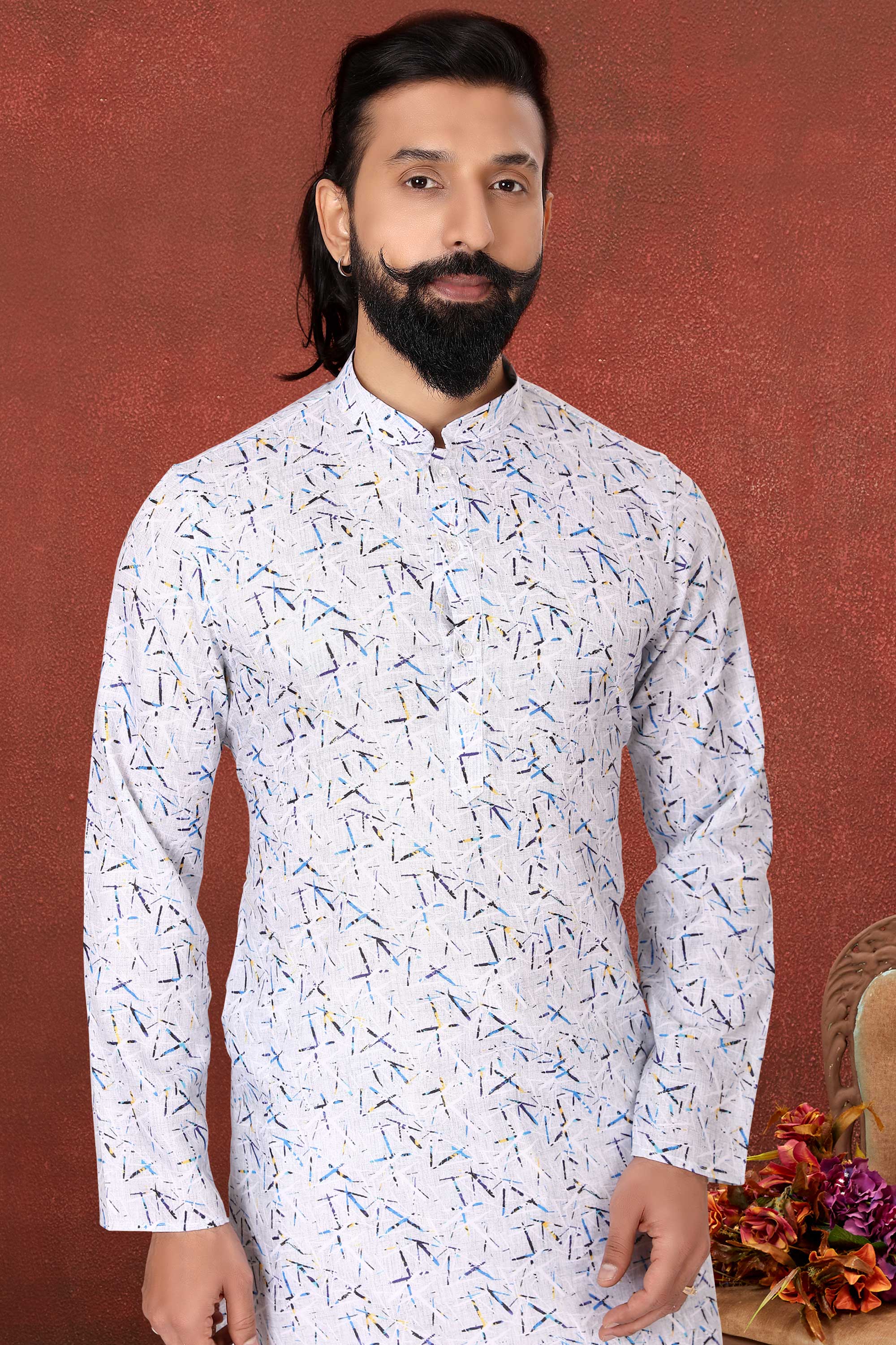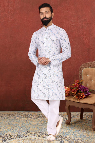 Sangeet Wear Readymade Kurta Pyjama For Men In Cotton White Color