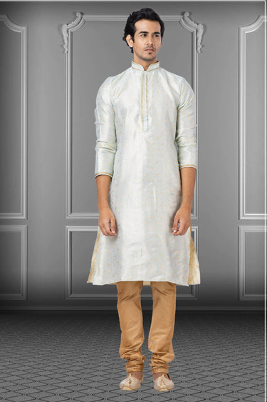 Sangeet Wear Readymade Kurta Pyjama For Men In Jacquard Fabric Light Cyan Color