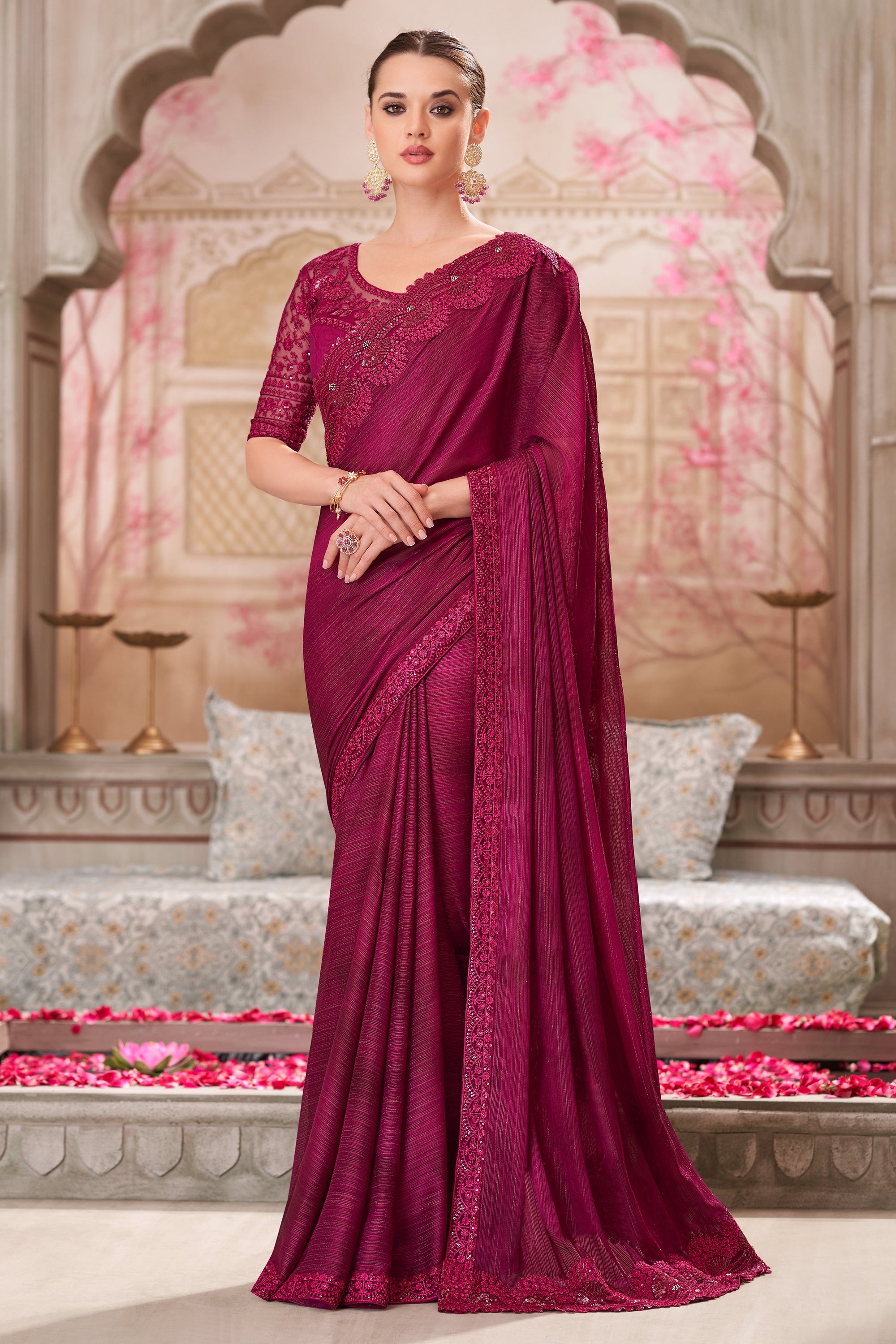 Reach Color Party Style Designer Charismatic Lace Border Work Saree With Embroidered Blouse is perfect for special occasions. This saree features an elegant lace border and intricate embroidery on the blouse, creating a stunning look. The high-quality fabric ensures a comfortable and stylish wear. Ideal for weddings, parties, or any festive event, this saree will make you stand out. Available in various vibrant colors, it's designed to flatter all body types. Care Instructions: Dry clean only to maintain the delicate embroidery and rich texture. Make a fashion statement with this beautiful ensemble!