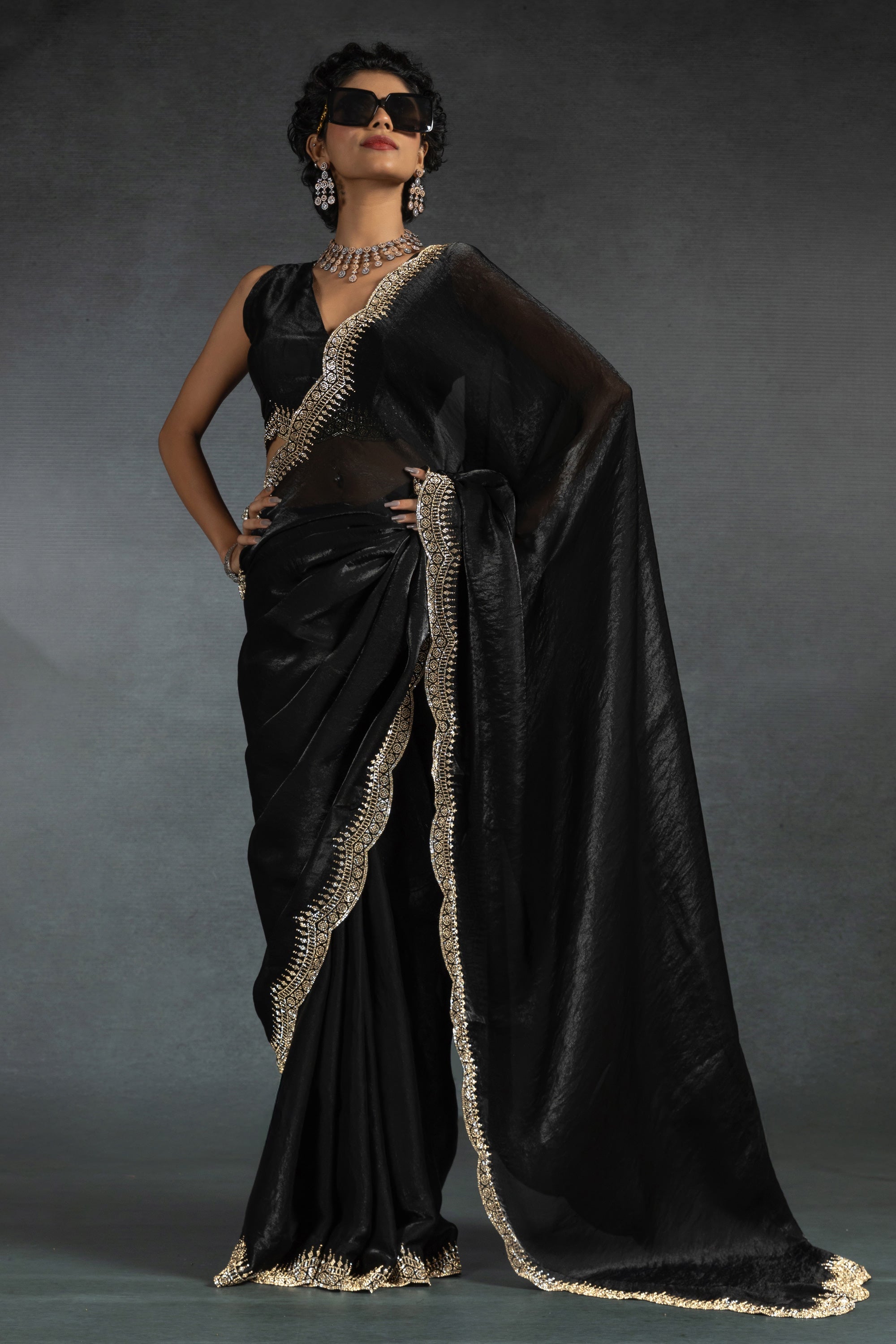 Elevate your evening attire with this exquisite satin silk saree. Crafted for elegance, this saree features an intricate stone border that adds a touch of luxury to its already sumptuous texture. The rich color exudes sophistication, making it the perfect choice for any special occasion. Drape yourself in the opulent satin silk and experience comfort along with style. Ideal for parties, weddings, or festive celebrations, this saree is designed to make you the center of attention.