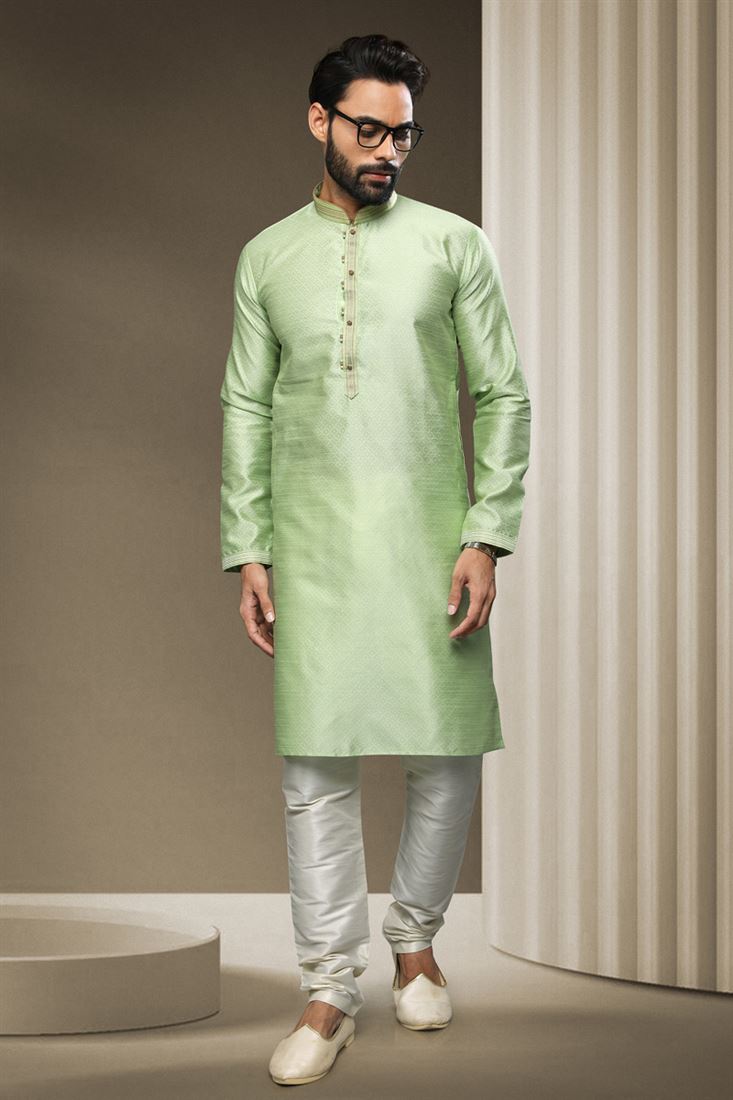 Sea Green Color Jacquard Silk Fabric Wedding Wear Readymade Kurta Pyjama For Men
