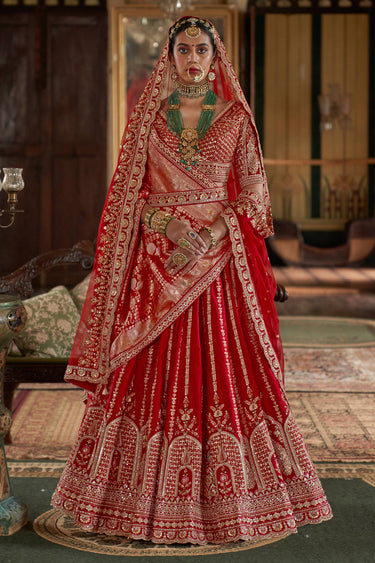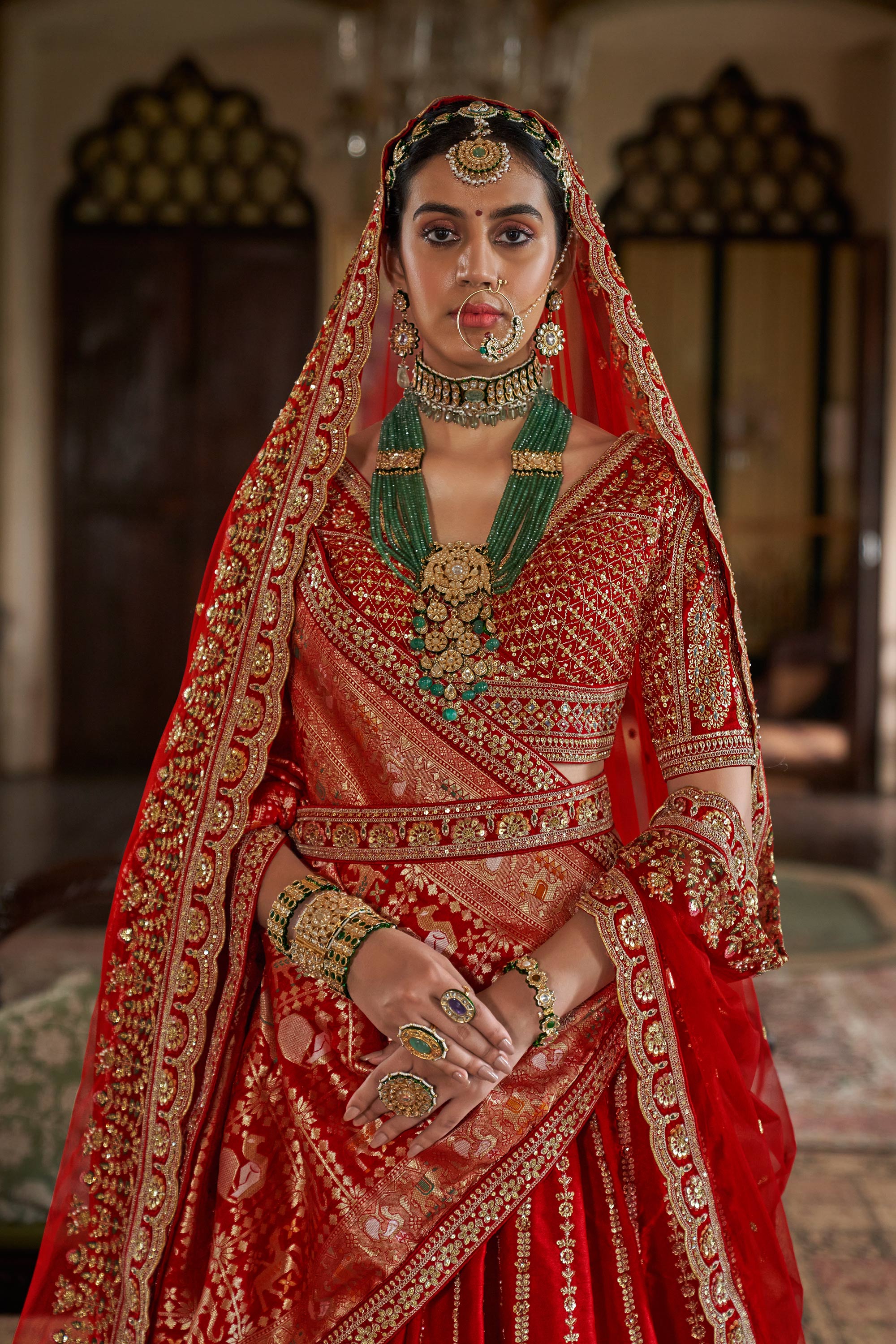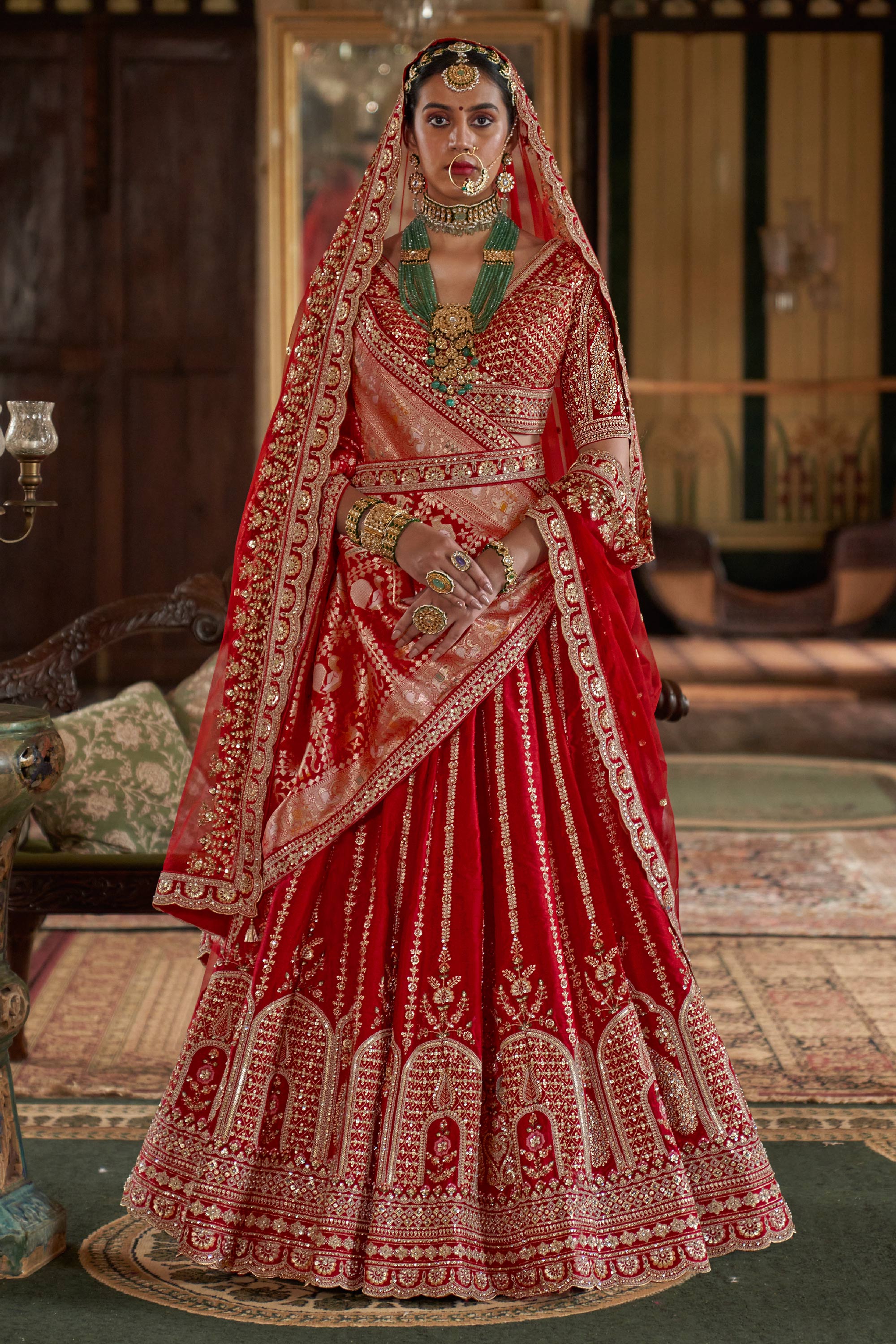 Designed to perfection, this Graceful Heavy Embroidered Bridal Lehenga Choli in Silk Fabric redefines bridal fashion. Crafted using top-grade silk, it offers both style and comfort. The richly embroidered patterns highlight every detail, giving a regal appearance that complements the joyous celebration. The lehenga pairs perfectly with a tailored blouse and a beautifully embellished dupatta, allowing for a complete, polished look. Its luxurious feel and attention to craftsmanship make it ideal for brides who want to stand out. Celebrate your special day with unmatched poise wearing this statement bridal attire.