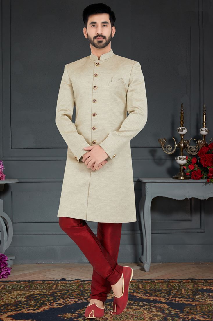 Silk Fabric Stylish Italian Indo Western In Off White Color