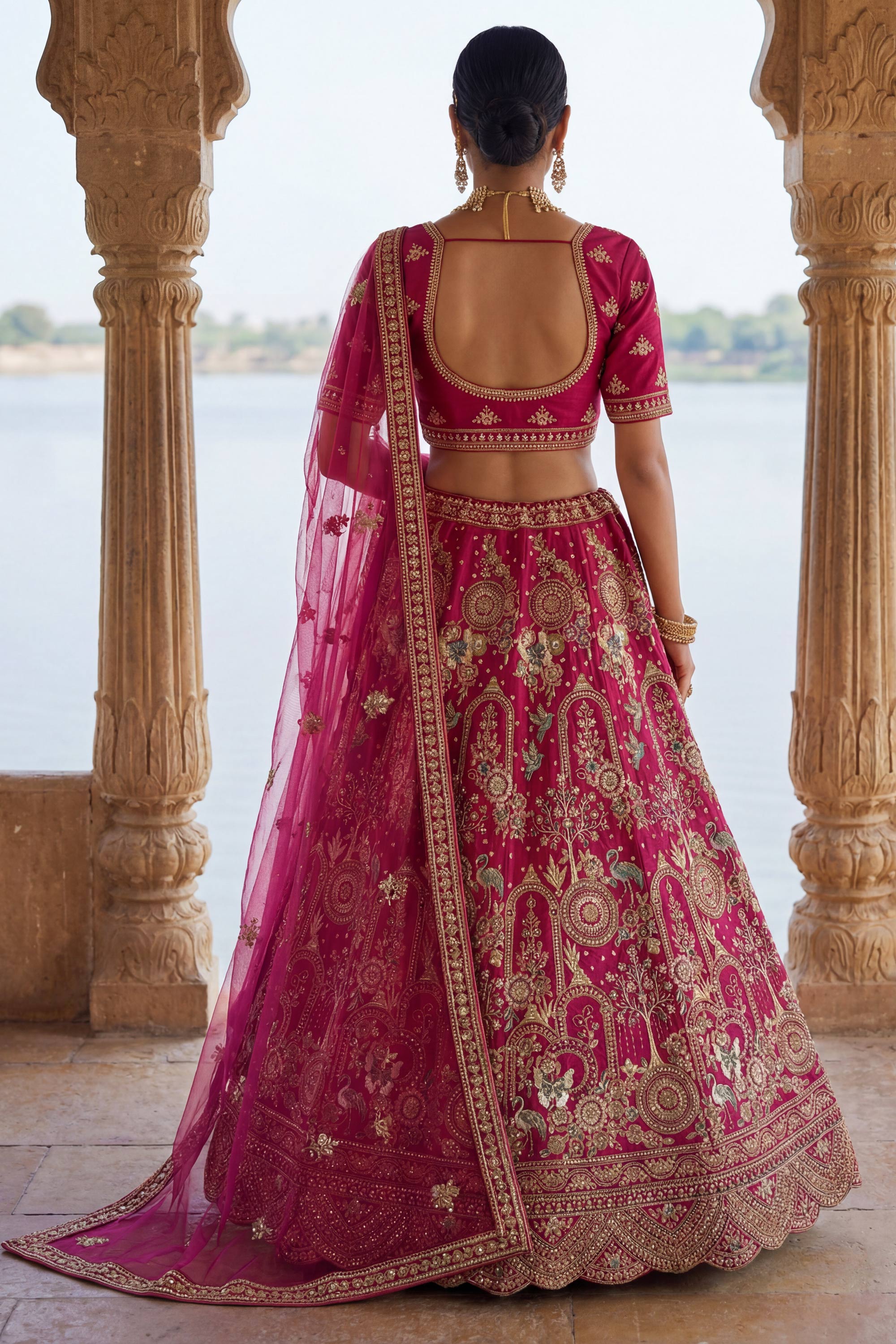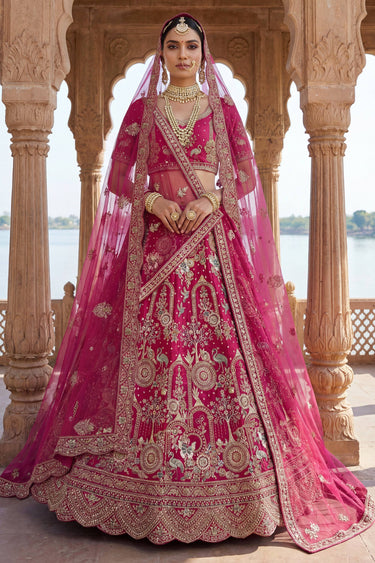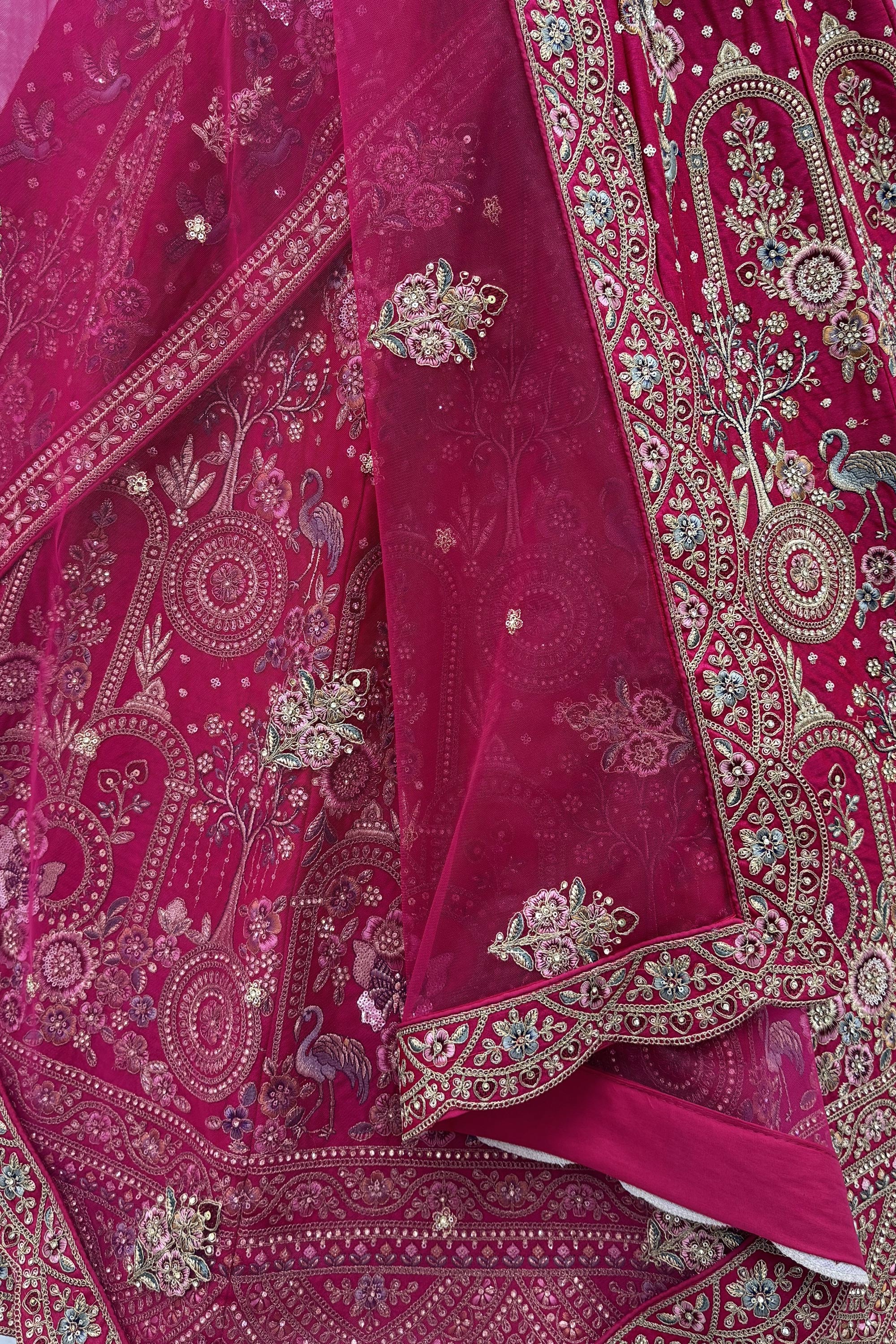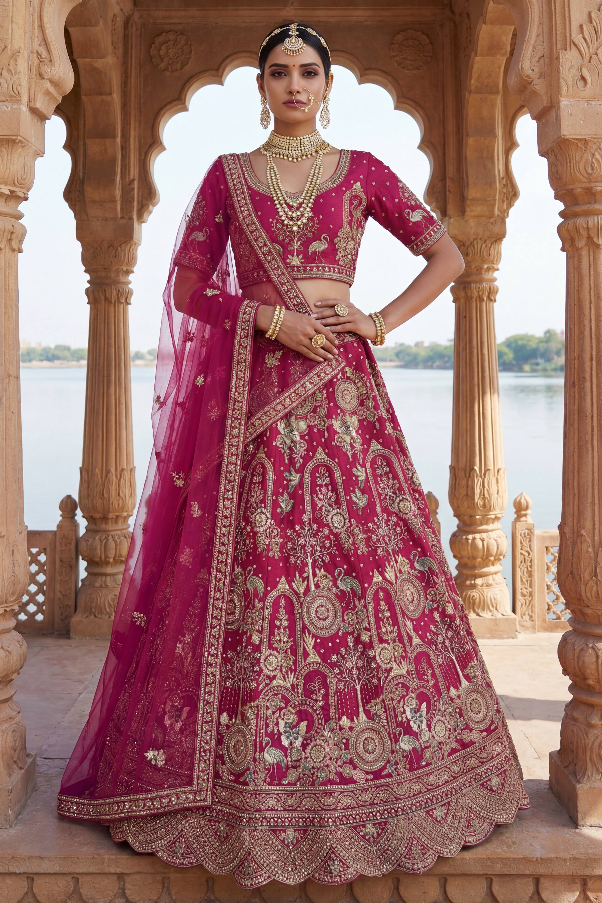 Silk Heavy Embroidered Bridal Lehenga Choli In Magenta Color
