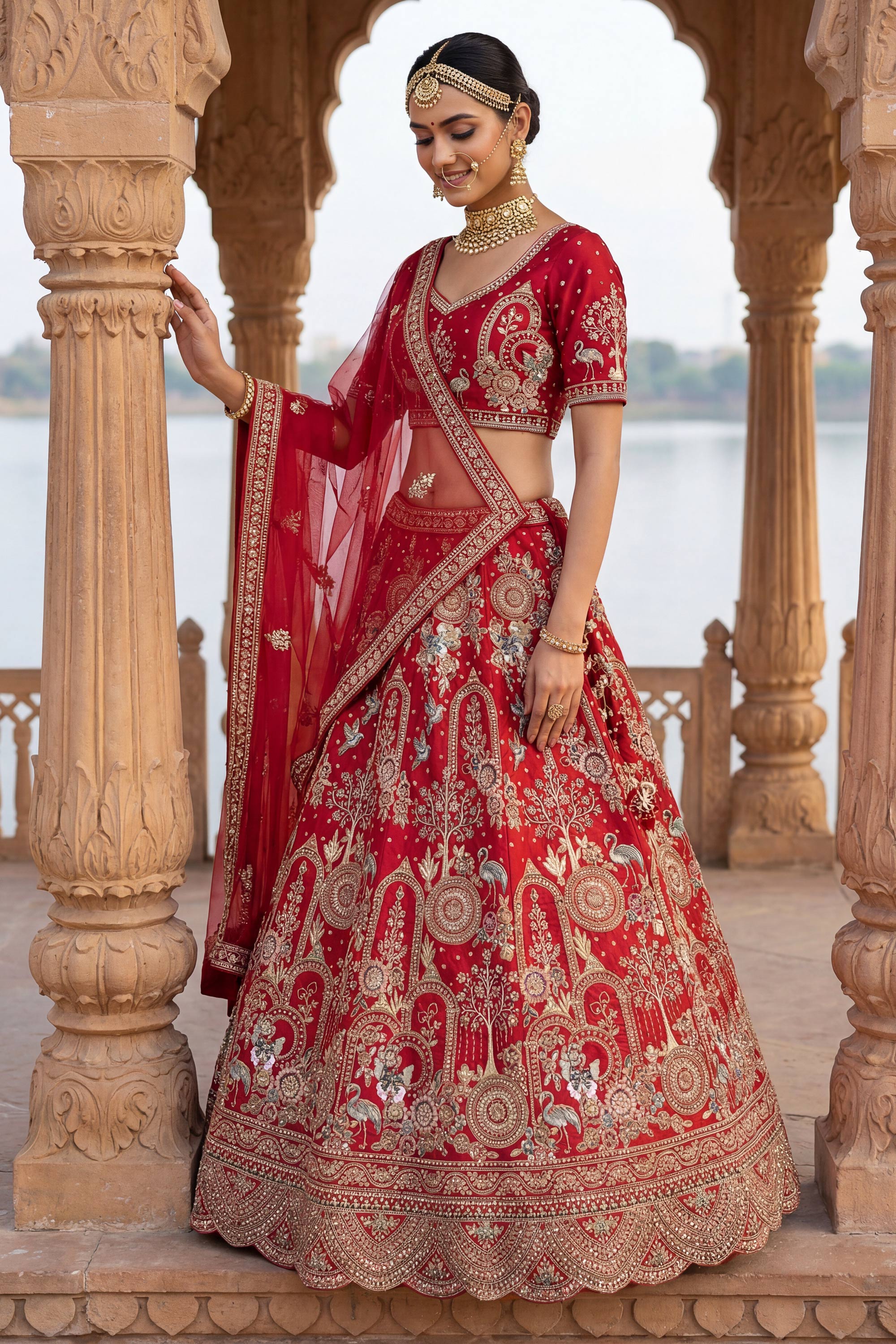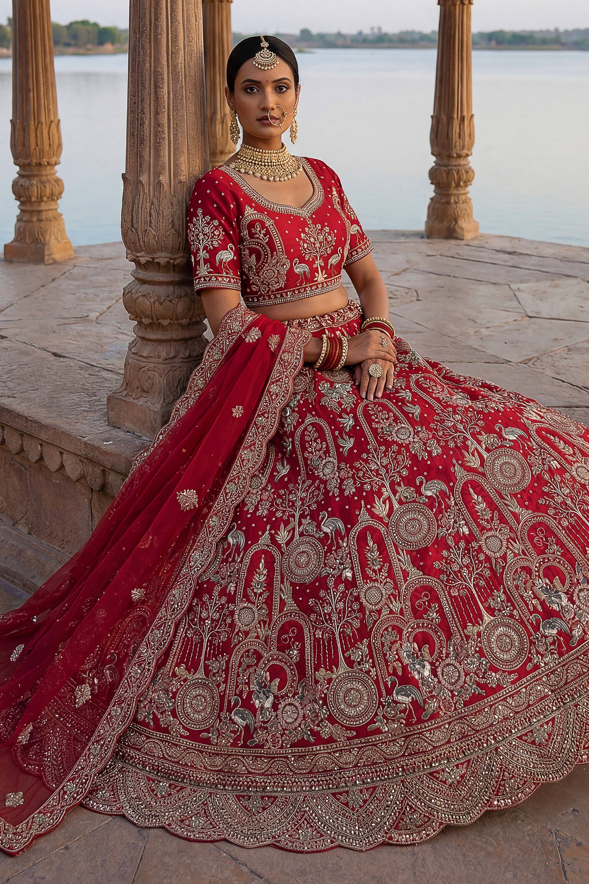 Silk Red Heavy Embroidered Bridal Lehenga With Designer Blouse