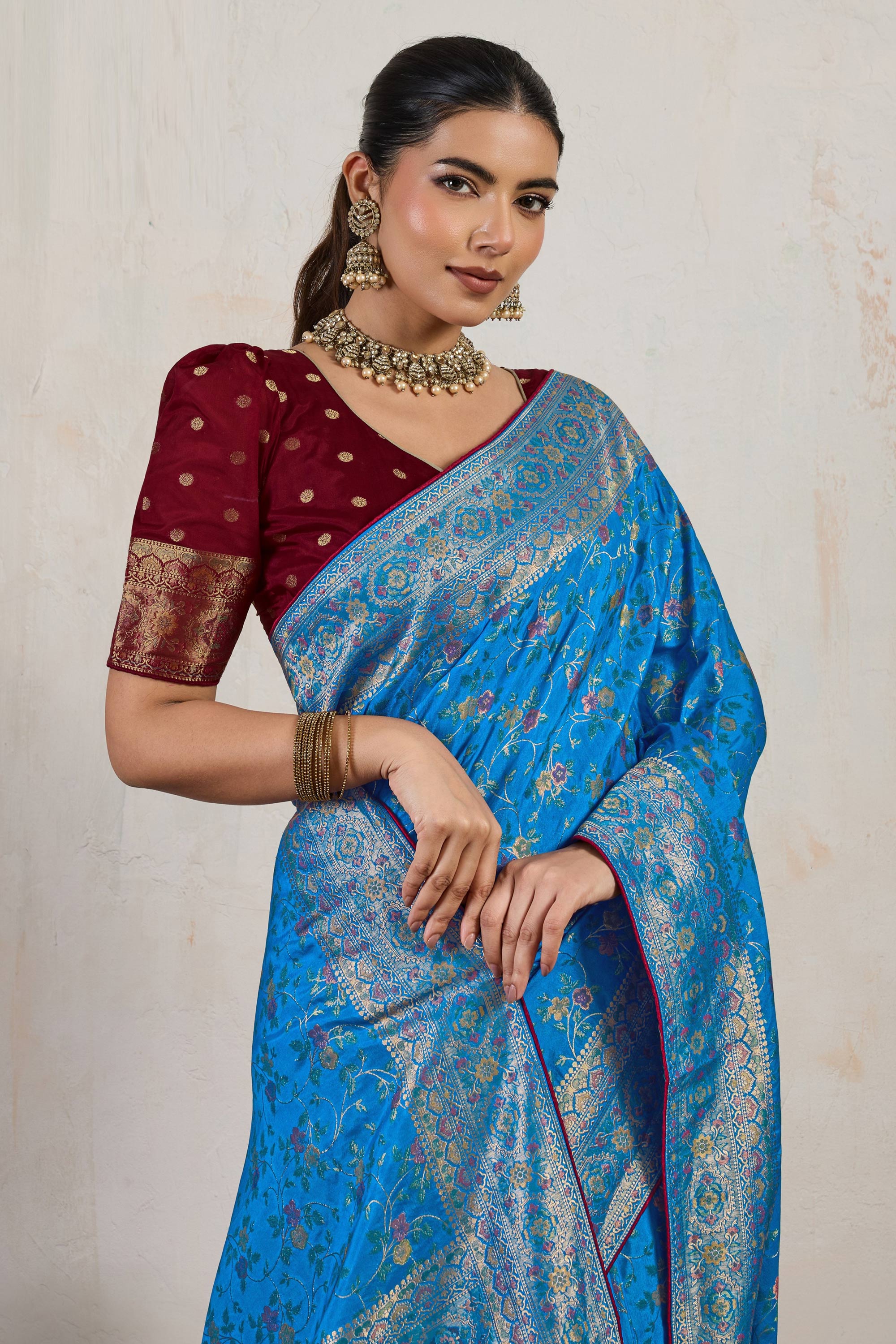 Sky Blue Sangeet Wear Art Silk Weaving Work Saree