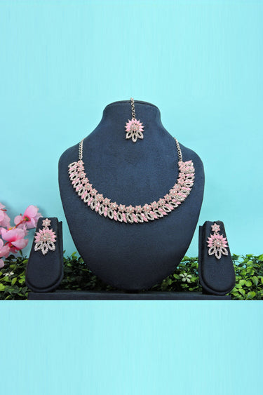 Sober Purple Color Alloy Material Necklace Set Earrings And Mang Tikka For Women