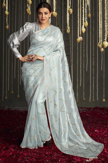 Solid Art Silk Fabric Kajal Aggarwal Saree In Light Cyan Color