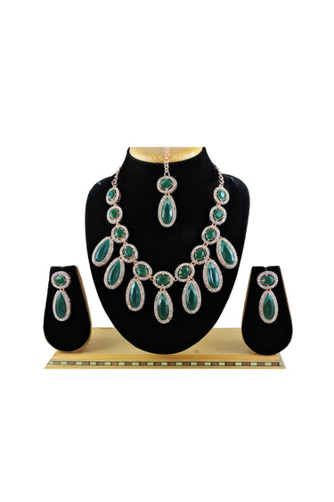 Turn heads with this Classic Premium Designer Necklace Set. A marvel in the realm of imitation jewellery, this set features a beautifully crafted alloy stone necklace that exudes opulence and grace. Accompanied by a pair of matching earrings and a stunning mang tikka, the pieces flawlessly sync in to add that extra spark to your overall look. Enjoy a seamless blend of luxury and affordability with this lavish alloy necklace set.