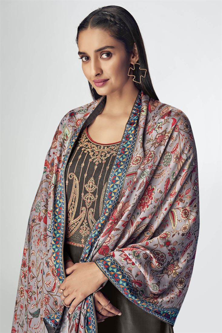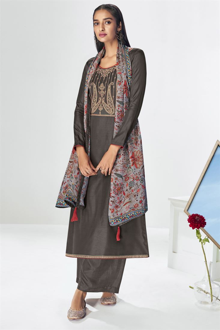 Striking Art Silk Fabric Dark Beige Color Embroidered Palazzo Salwar Suit