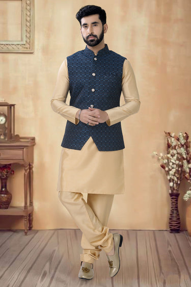 Stunning Cream Color Function Wear Readymade Men Kurta Pyjama With Jacket