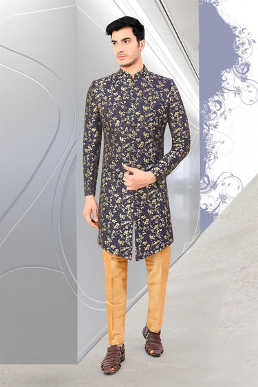 Stunning Fashion Forward Blue Jacquard Indo Western Set