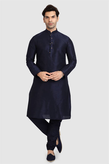 Stunning Navy Blue Color Art Silk Fabric Readymade Kurta Pyjama For Men
