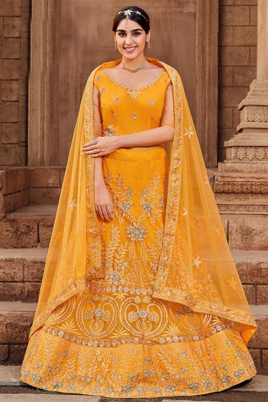 Stunning Net Fabric Yellow Color Function Wear Lehenga