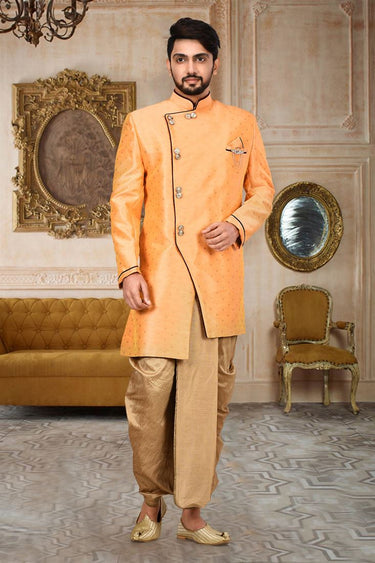 Stunning Peach Color Function Wear Readymade Men Indo Western With Dhoti