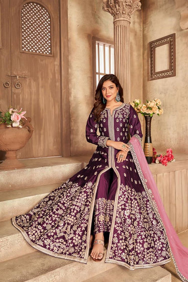 Stunning Purple Embroidered Art Silk Floor Length Anarkali Suit