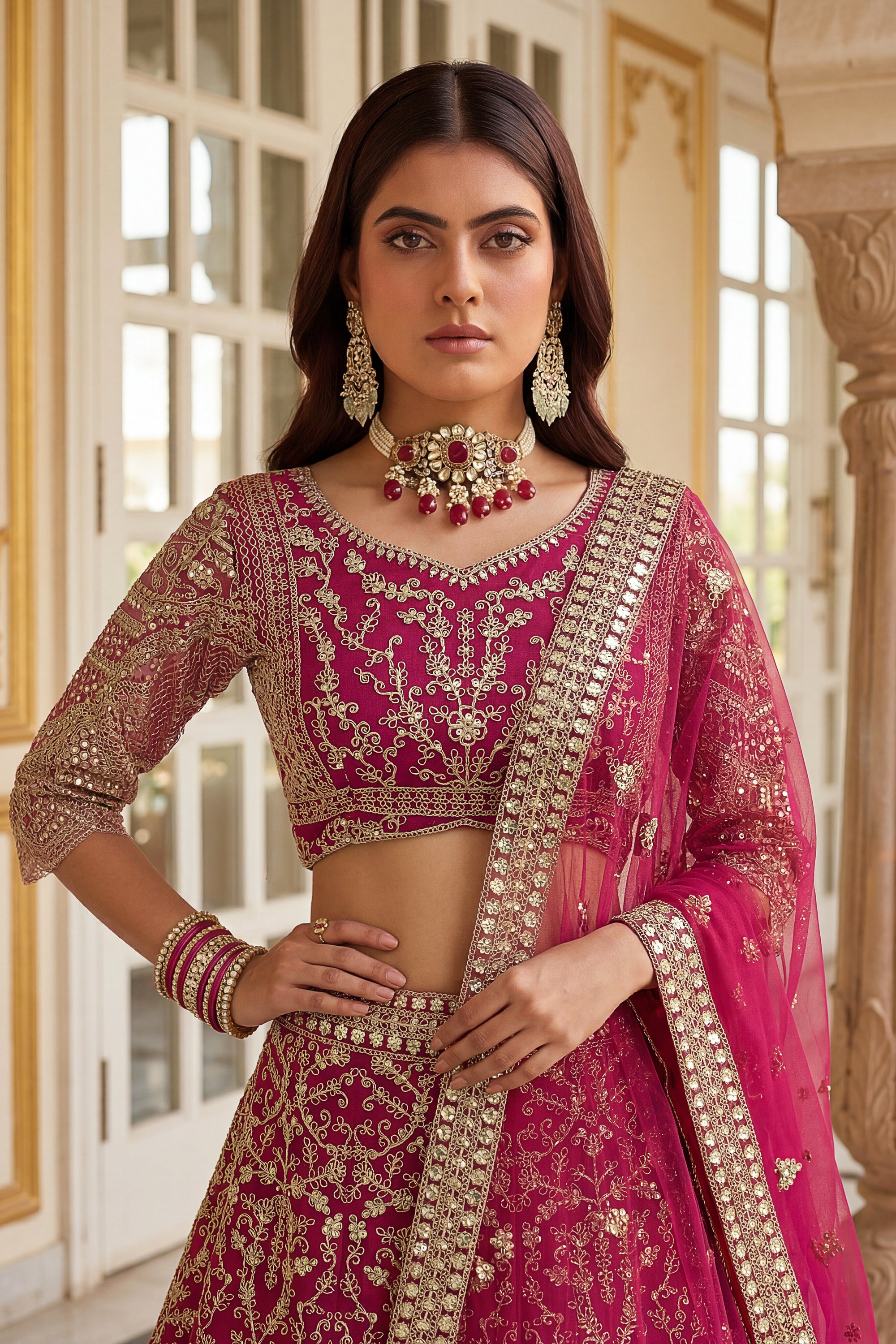 Make heads turn with the Rich Embroidered Wedding Collection Premium Net Sangeet Lehenga Choli. Designed to reflect timeless elegance, this outfit features detailed embroidery on lightweight net fabric. Perfect for weddings or traditional events, this lehenga comes with a matching blouse and a soft, flowing dupatta for a coordinated and stylish appearance. Comfortable yet stunning, it balances modern design with classic charm, ensuring you look flawless throughout your celebration. Ideal for festive moments, it’s an outfit made to impress.
