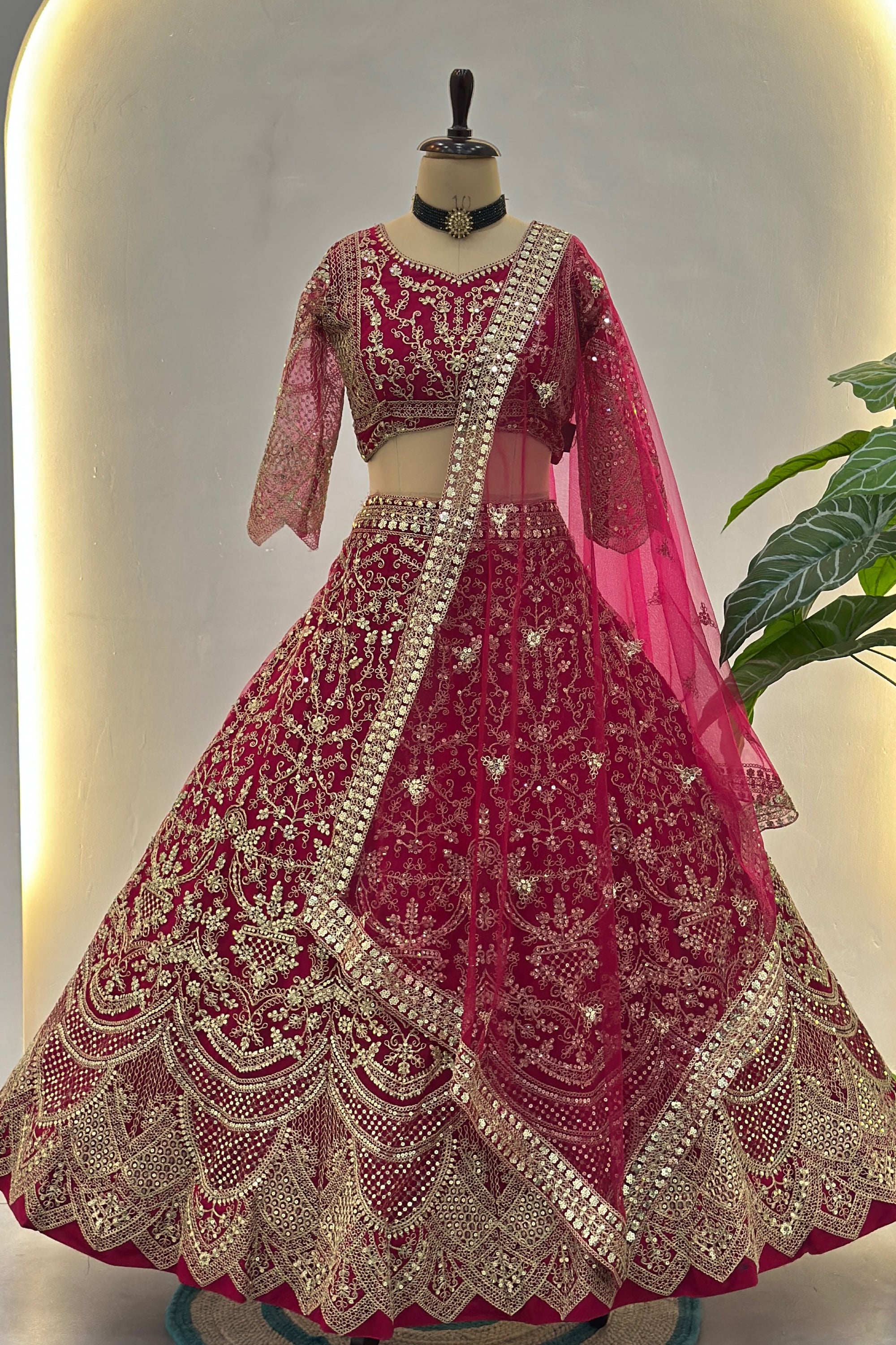Stunning Rani Traditional Sangeet Function Designer Net Lehenga Choli