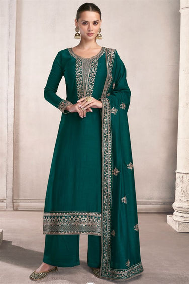 Teal Color Chinon Fabric Admirable Palazzo Suit