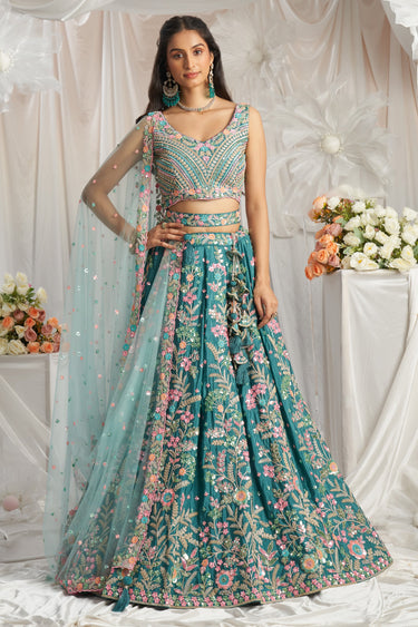Teal Wedding Wear Poly Georgette Lehenga Choli