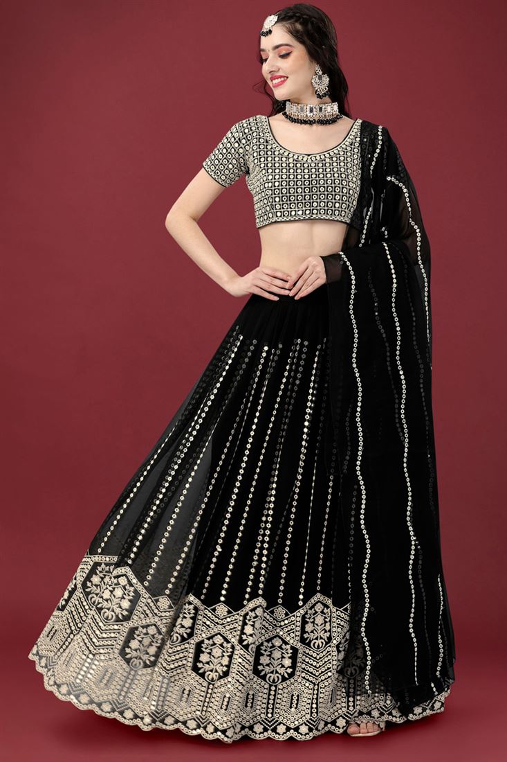 Traditional Wear Navy Blue Embroidered Georgette Designer Lehenga Choli
