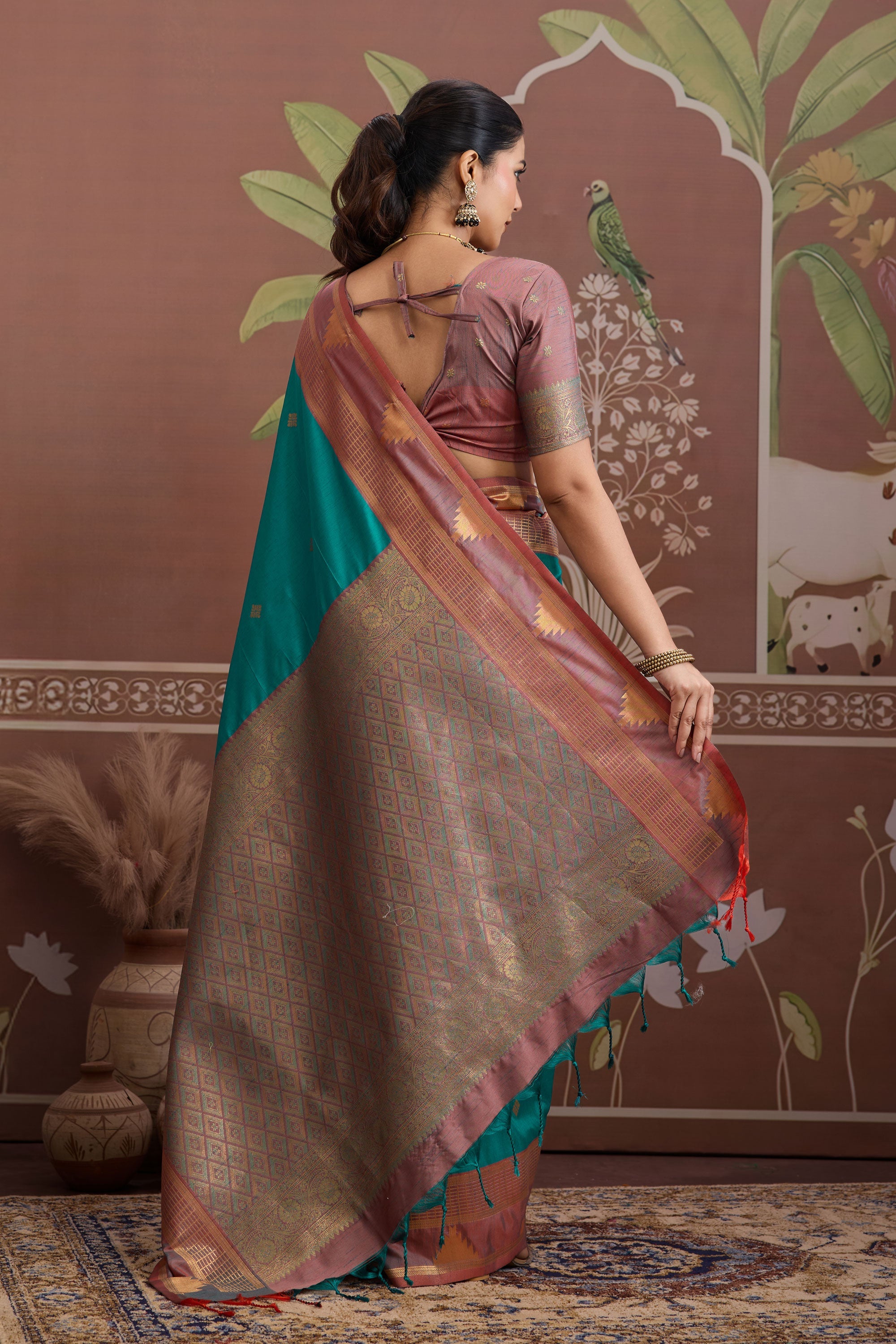 Tussar Silk Handloom Saree In Teal Color