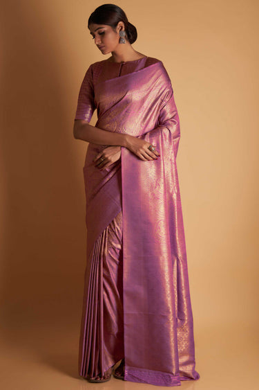 Two Tone Kanjivaram Silk Fabric Sangeet Wear Pink Color Saree
