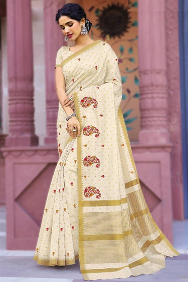 Vartika Singh Beige Color Art Silk Fabric Exquisite Embroidered Saree