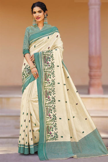 Vartika Singh Beige Color Art Silk Fabric Pleasant Embroidered Saree
