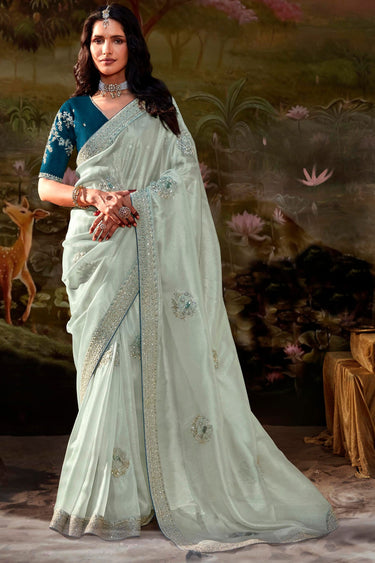 Vartika Singh Creative Light Cyan Color Fancy Fabric Saree