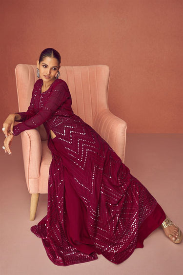 Vartika Singh Engaging Burgundy Color Party Style Georgette Anarkali Suit
