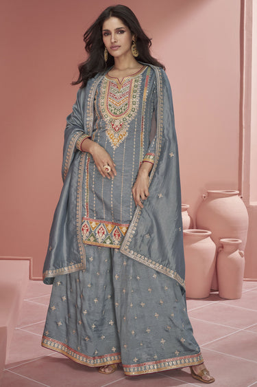 Vartika Singh Organza Silk Grey Color Fascinating Function Style Readymade Palazzo Suit