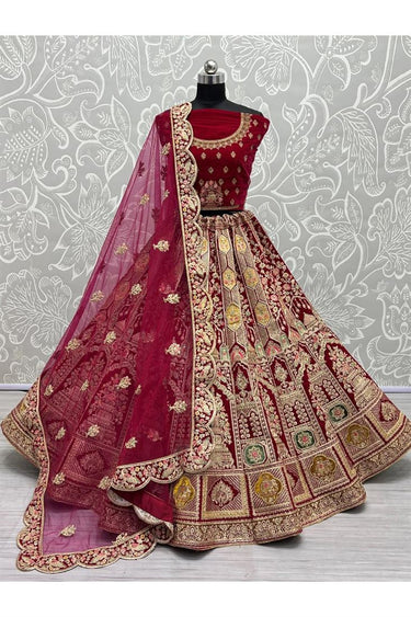 Velvet Fabric Pink Color Attractive Bridal Look Lehenga
