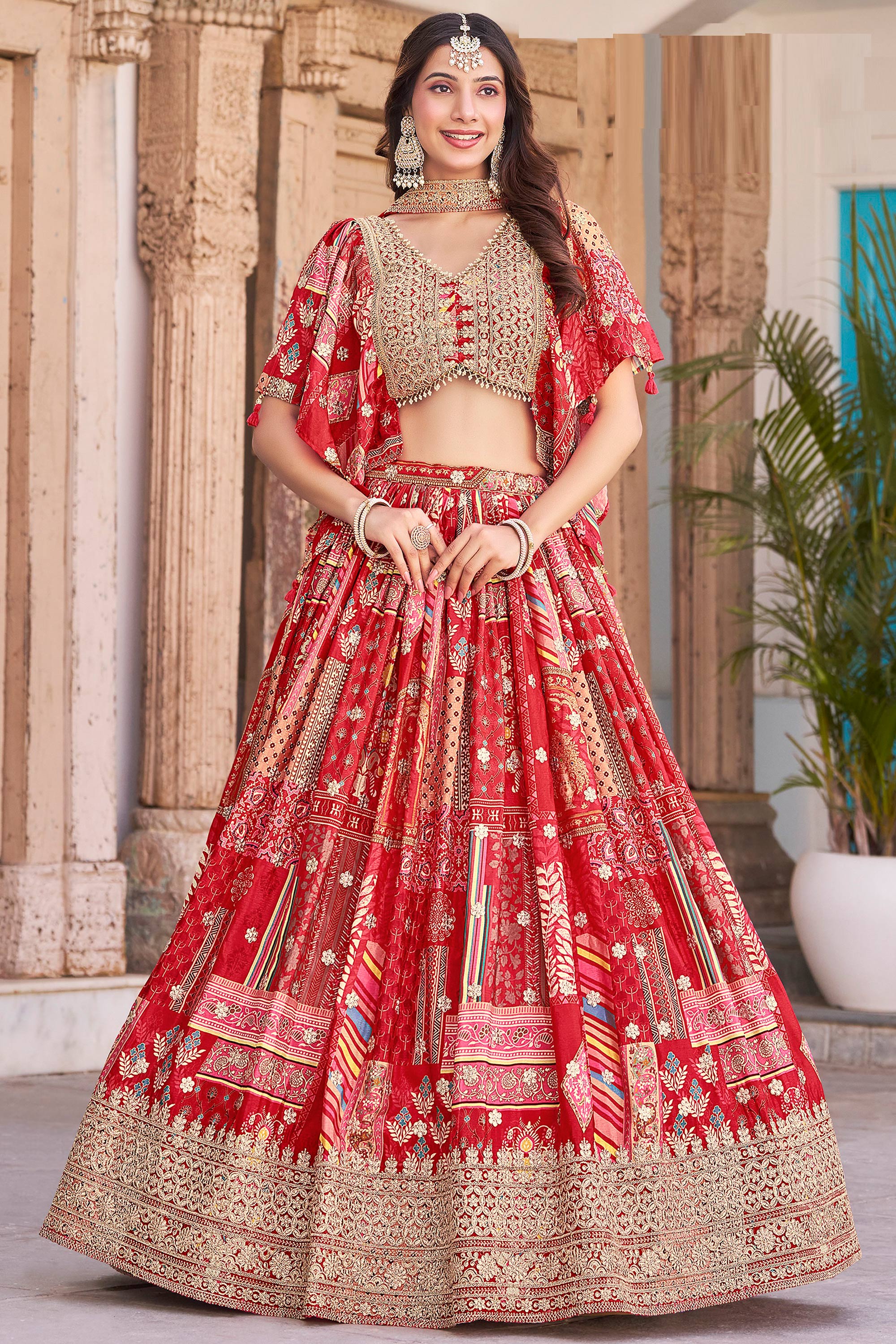 Vintage Red Color Festive Look Chinon Silk Lehenga Choli