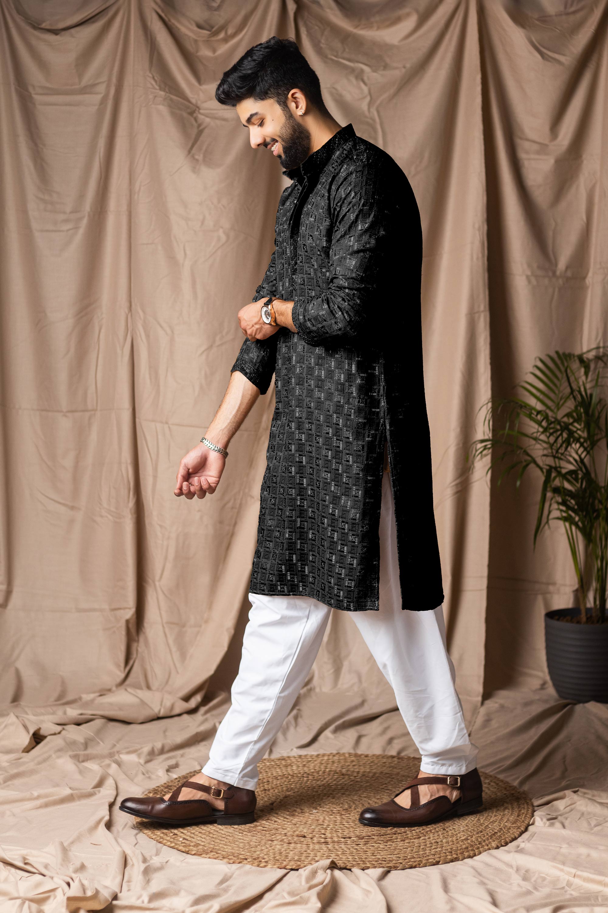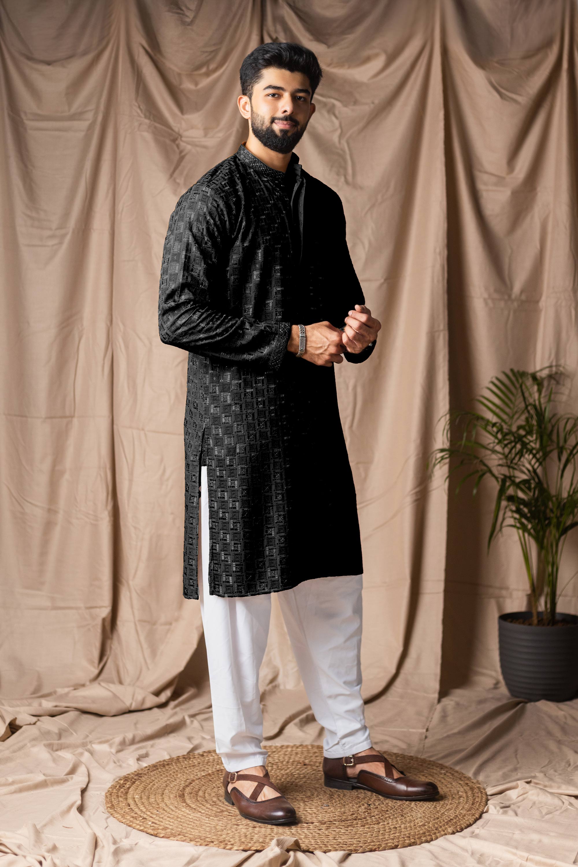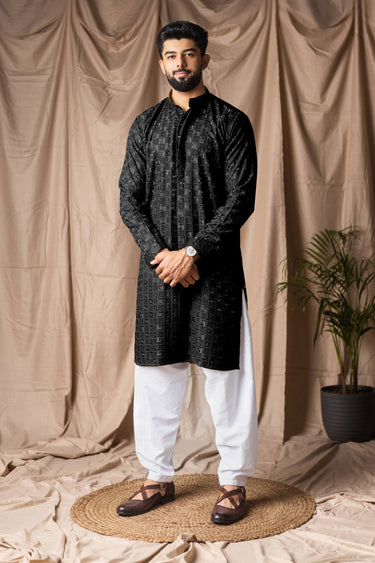 Viscose Rayon Black Men Readymade Kurta Pyjama For Wedding Wear