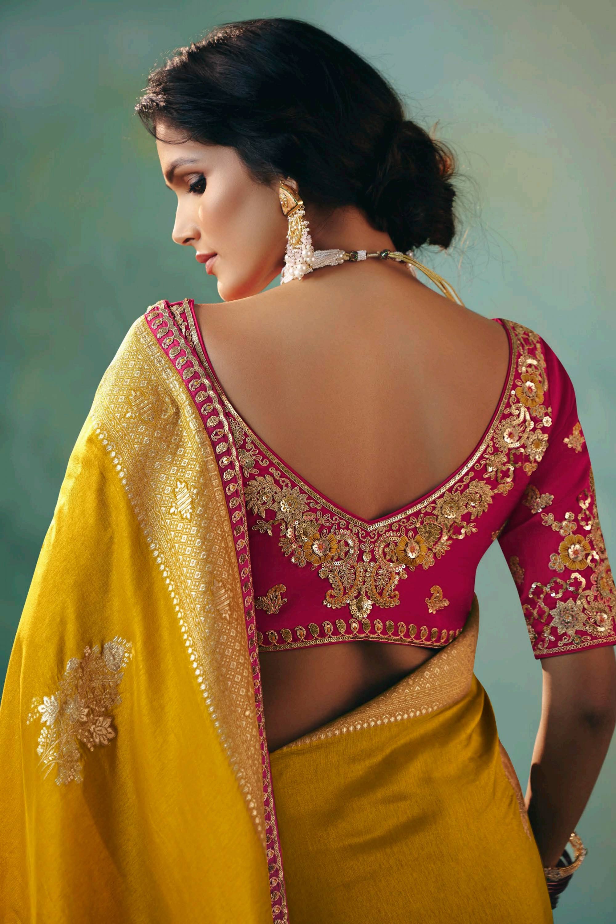 Experience sophistication and style with the Sangeet Wear Viscose Silk Zari Border Work Saree. The smooth texture of viscose silk is complemented by the exquisite craftsmanship of the zari border, giving it a classy and refined appeal. This saree is lightweight, making it an ideal choice for extended wear during weddings, parties, or cultural celebrations. Its versatile design lets you embrace traditional charm with a modern flair, allowing endless styling possibilities. This saree isn’t just a garment—it’s an expression of elegance and confidence. Make it yours or gift it to someone who loves ethnic wear.