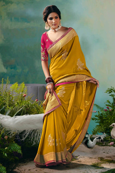 Viscose Silk Zari Border Work Saree In Mustard Color